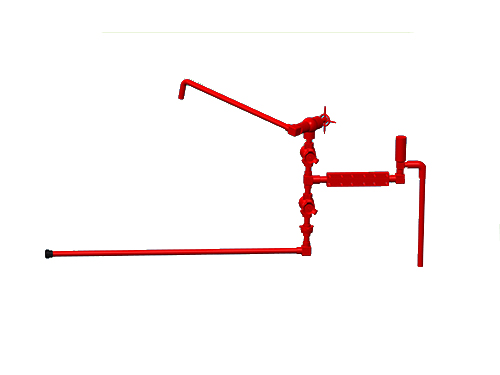 壓井管匯是油氣井壓力控制設(shè)備中的一個(gè)重要組成部分。它的作用是:當(dāng)不能通過(guò)鉆柱正常循環(huán)時(shí),可通過(guò)壓井管匯向井中泵入鉆井液,達(dá)到控制井壓的目的。壓井管匯的一端與鉆井四通側(cè)孔相連,一端和鉆井泥漿泵相連。